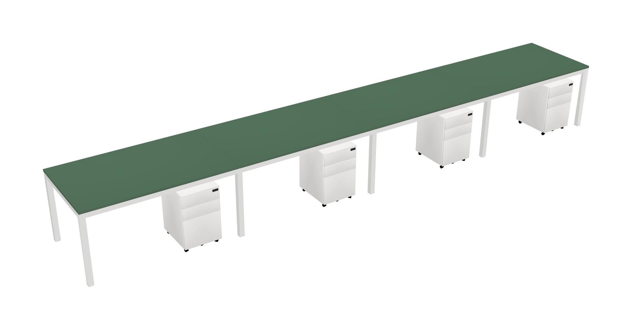 Green Rectangular Office Desk With Metal Mobile Drawers For 4 Persons