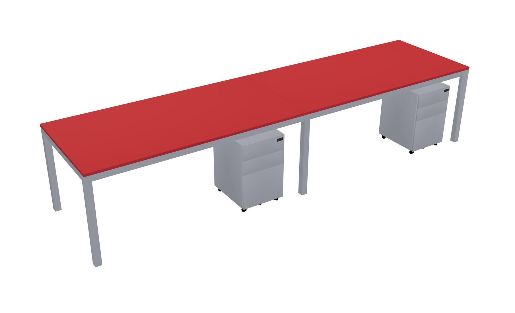 Prism Red Rectangular Office Desk With Metal Mobile Drawers For 2 Persons