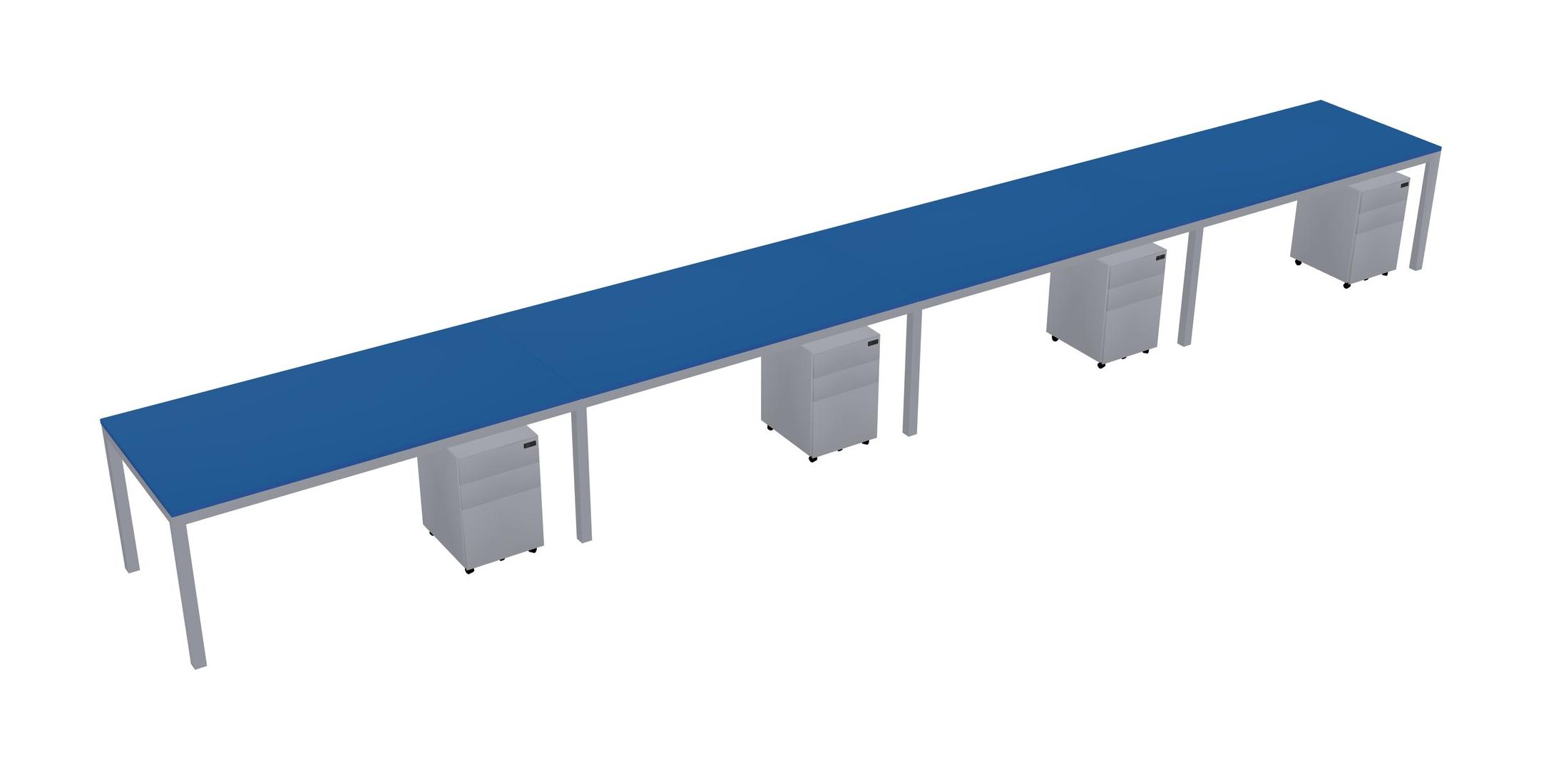 Prism Blue Rectangular Office Desk With Metal Mobile Drawers For 4 Persons