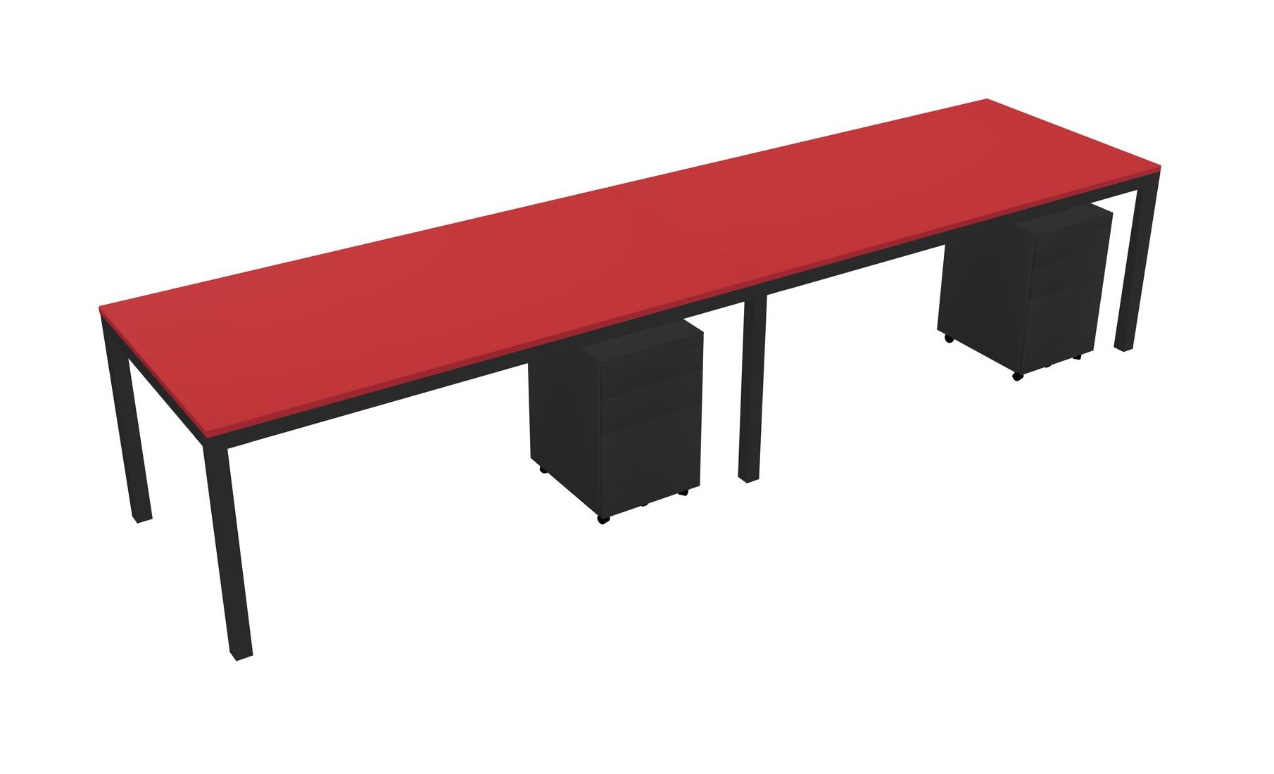 Prism Red Rectangular Office Desk With Metal Mobile Drawers For 2 Persons