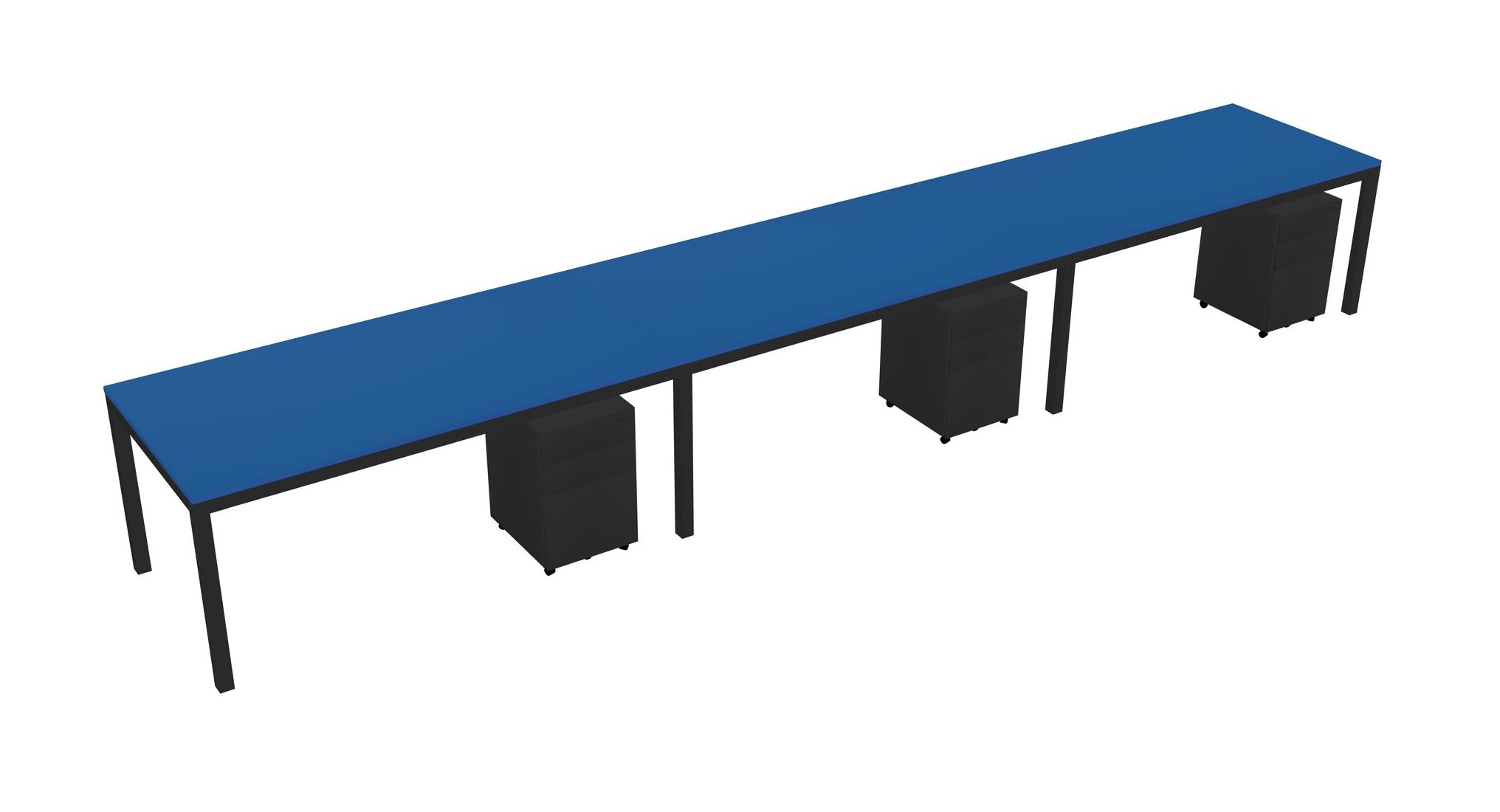 Prism Blue Rectangular Office Desk With Metal Mobile Drawers For 3 Persons
