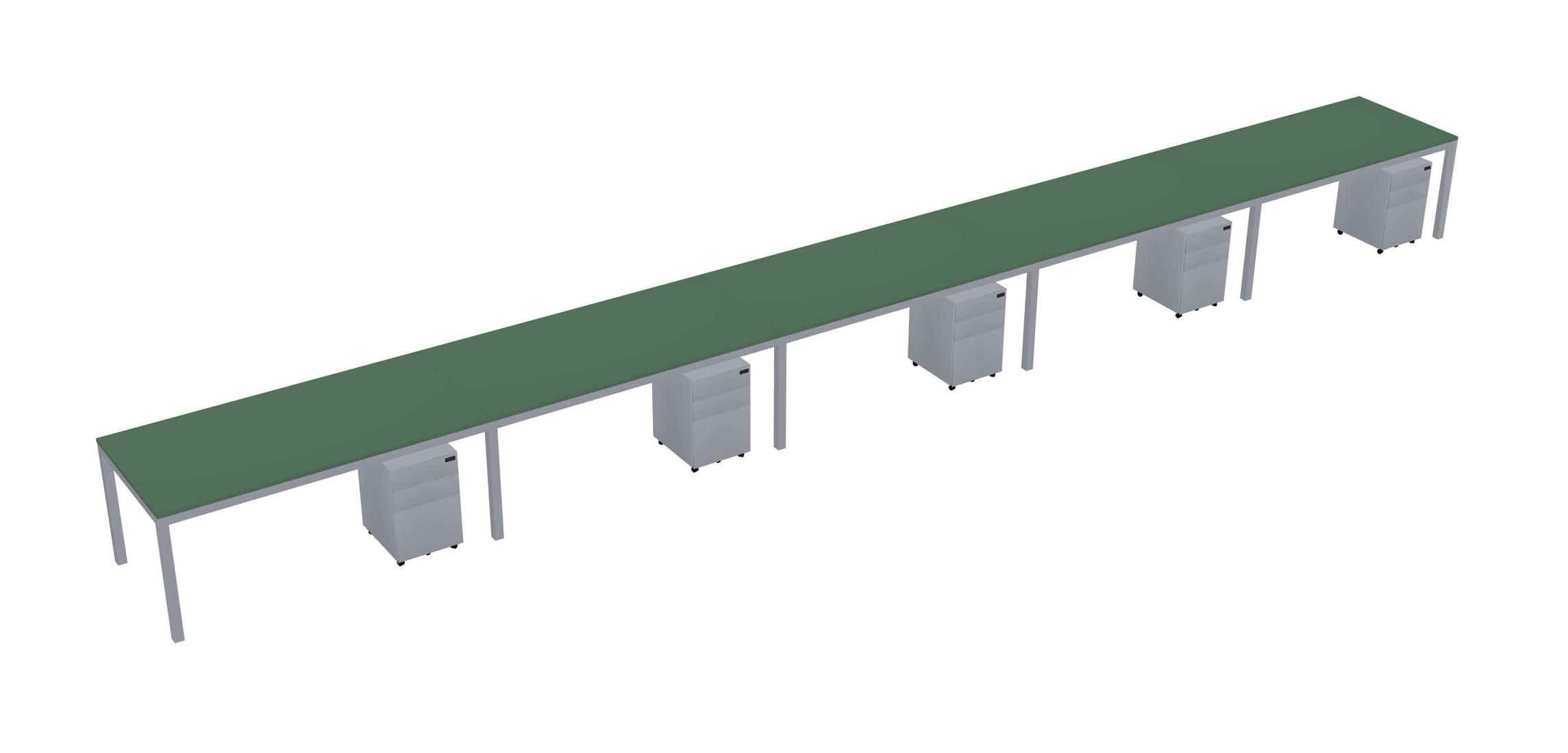 Green Rectangular Office Desk With Metal Mobile Drawers For 5 Persons