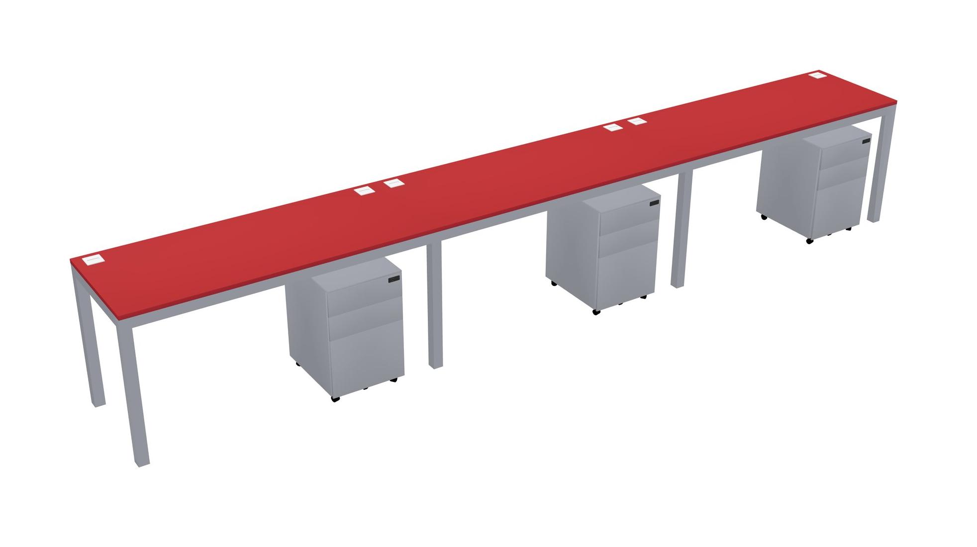 Prism Red Rectangular Office Desk With Metal Mobile Drawers For 3 Persons