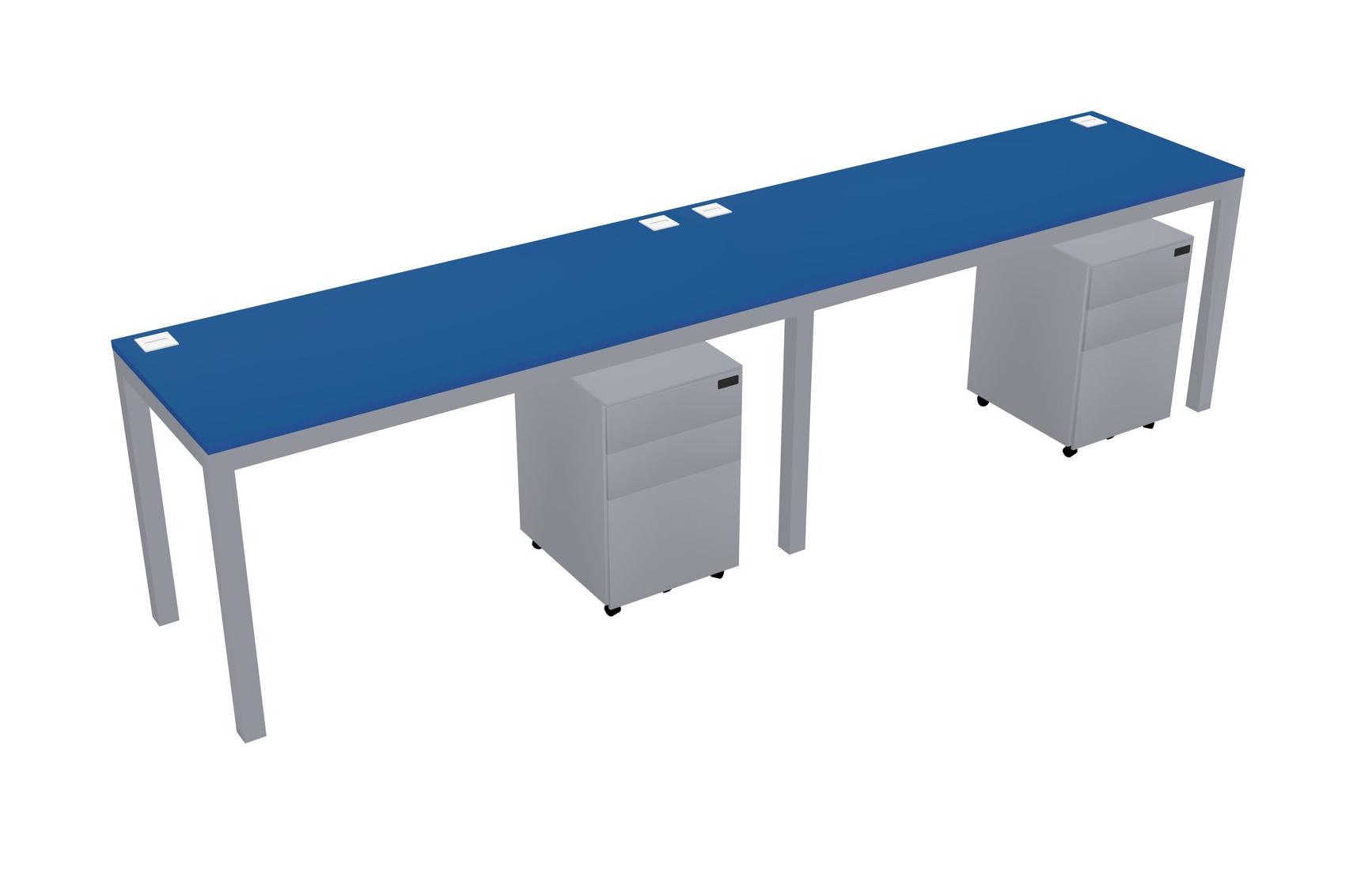 Prism Blue Rectangular Office Desk With Metal Mobile Drawers For 2 Persons