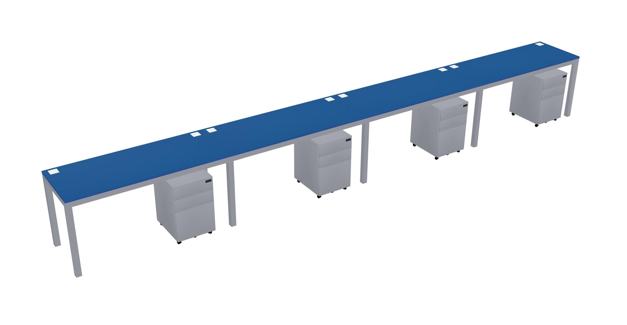 Prism Blue Rectangular Office Desk With Metal Mobile Drawers For 4 Persons