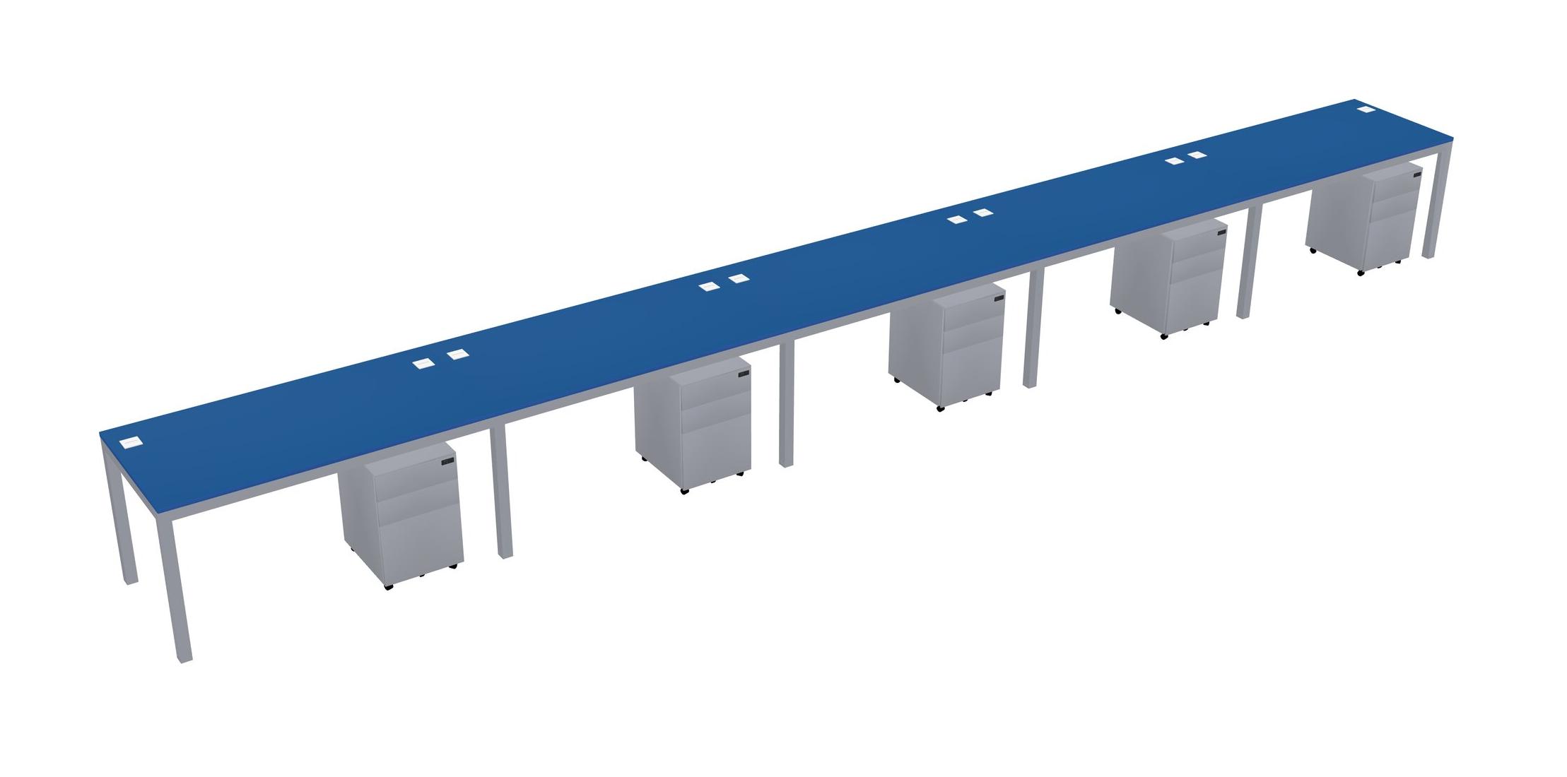 Prism Blue Rectangular Office Desk With Metal Mobile Drawers For 5 Persons