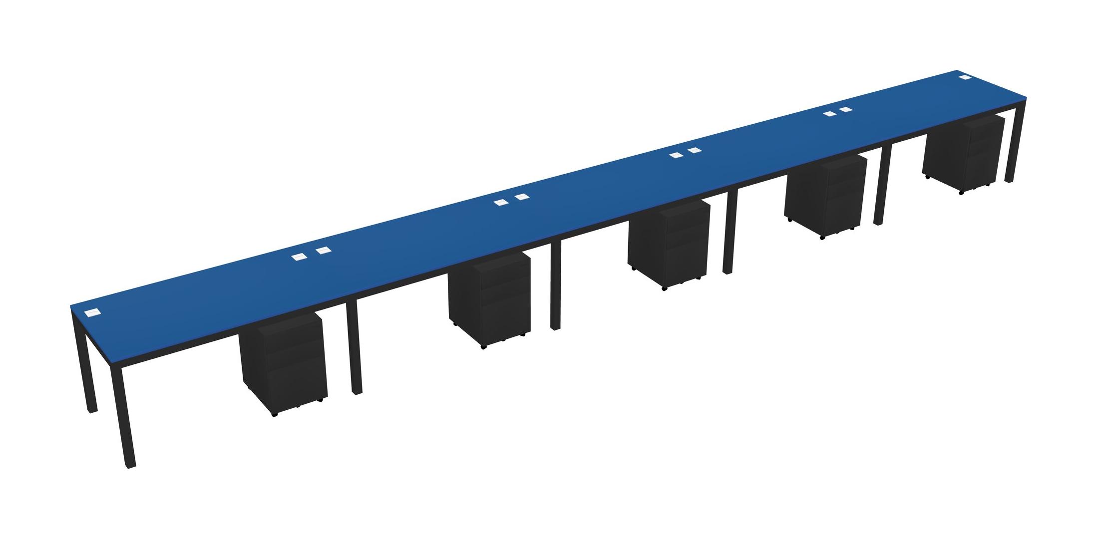 Prism Blue Rectangular Office Desk With Metal Mobile Drawers For 5 Persons