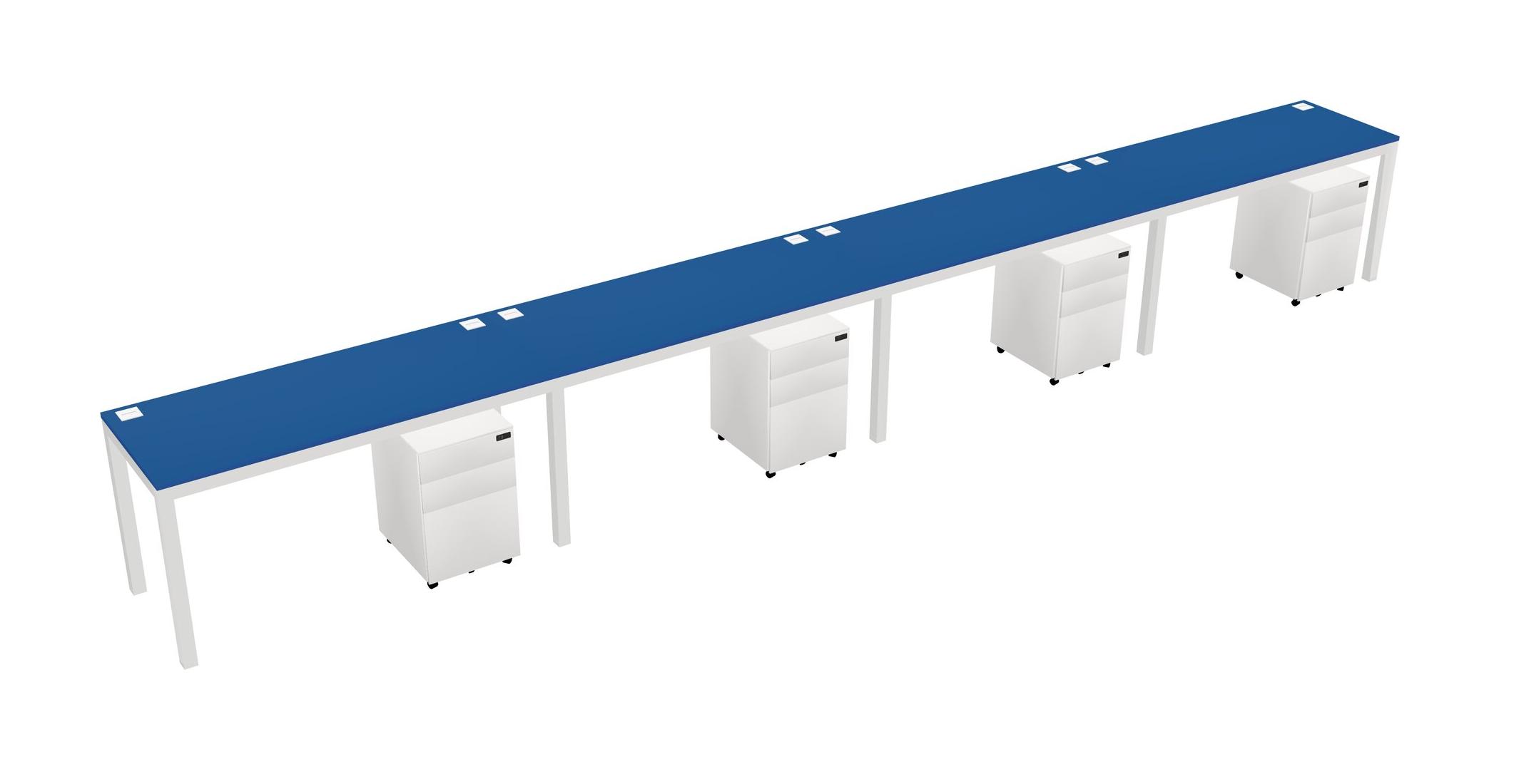 Prism Blue Rectangular Office Desk With Metal Mobile Drawers For 4 Persons
