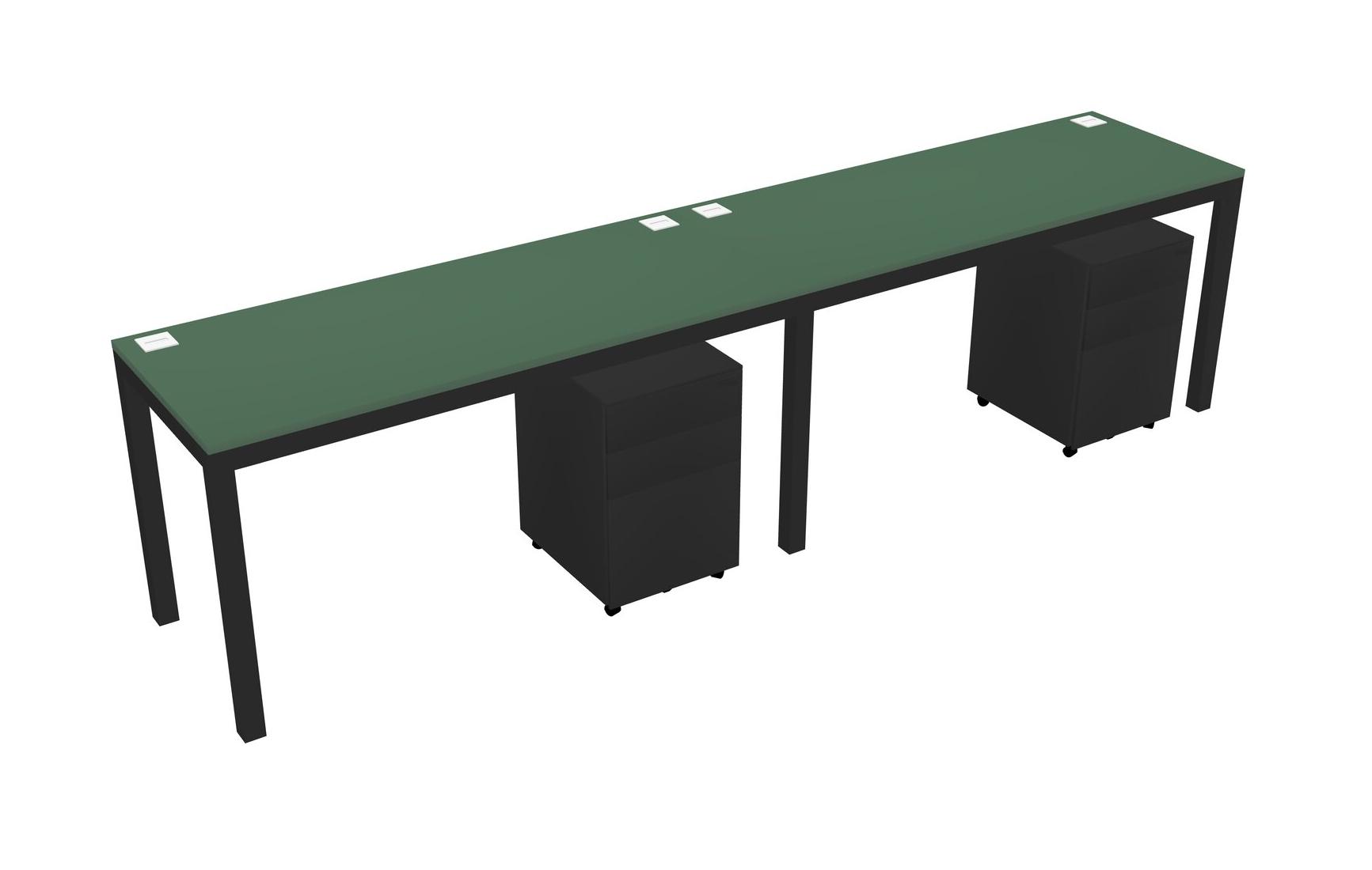 Green Rectangular Office Desk With Metal Mobile Drawers For 2 Persons
