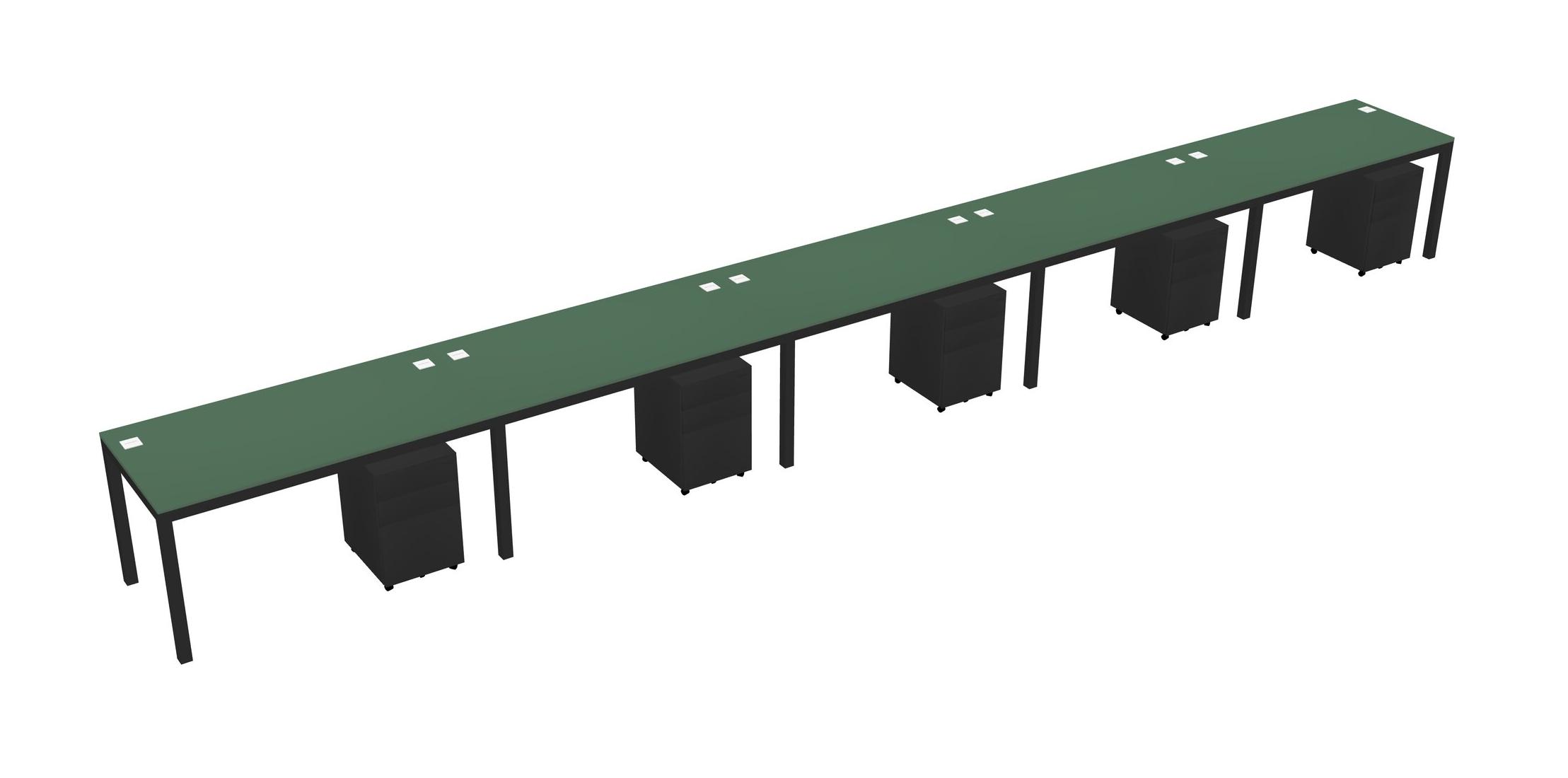 Green Rectangular Office Desk With Metal Mobile Drawers For 5 Persons