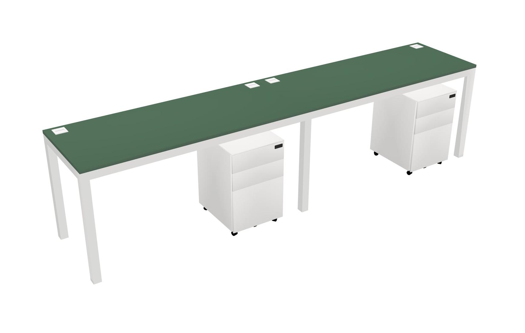 Green Rectangular Office Desk With Metal Mobile Drawers For 2 Persons