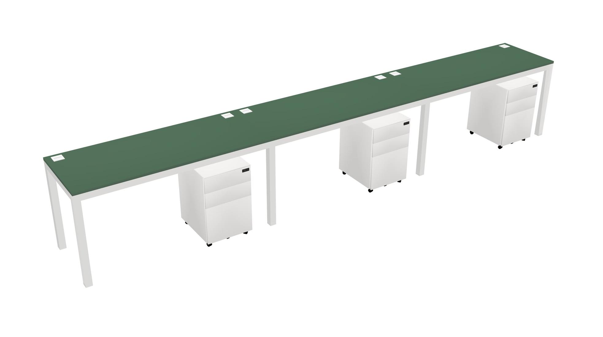 Green Rectangular Office Desk With Metal Mobile Drawers For 3 Persons