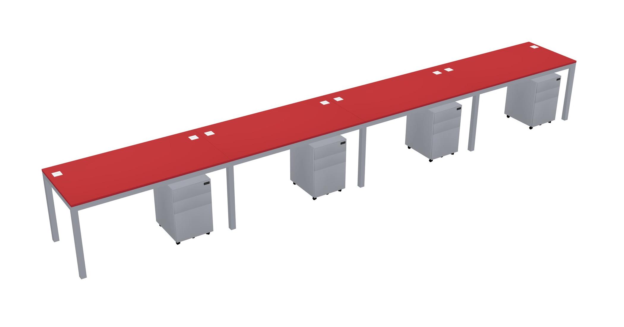 Prism Red Rectangular Office Desk With Metal Mobile Drawers For 4 Persons