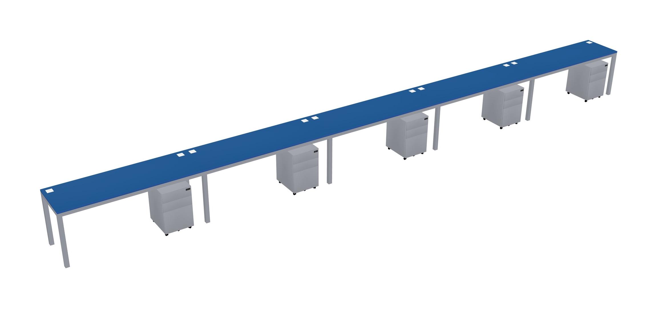 Prism Blue Rectangular Office Desk With Metal Mobile Drawers For 5 Persons