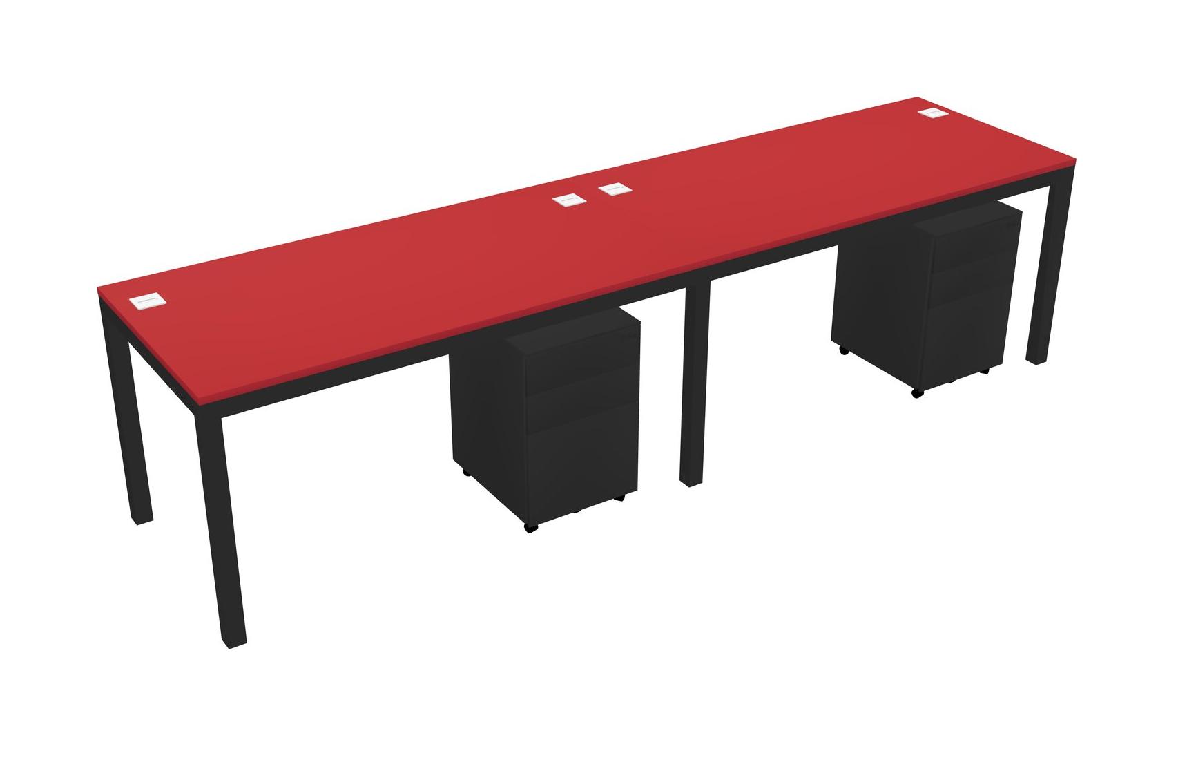 Prism Red Rectangular Office Desk With Metal Mobile Drawers For 2 Persons