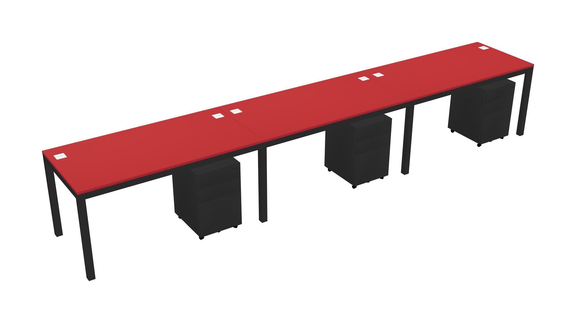Prism Red Rectangular Office Desk With Metal Mobile Drawers For 3 Persons