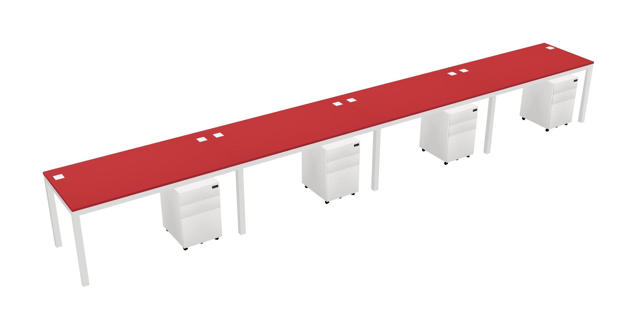 Prism Red Rectangular Office Desk With Metal Mobile Drawers For 4 Persons