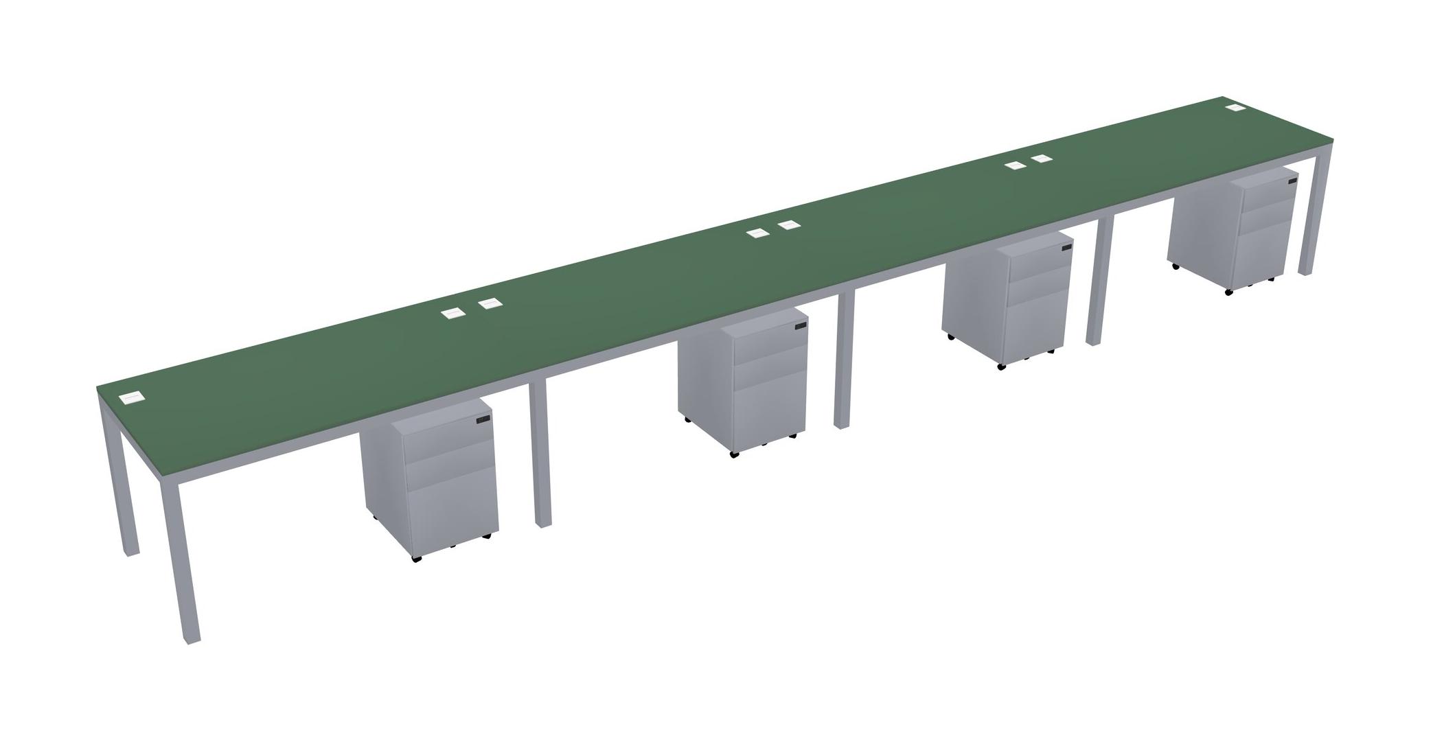 Green Rectangular Office Desk With Metal Mobile Drawers For 4 Persons