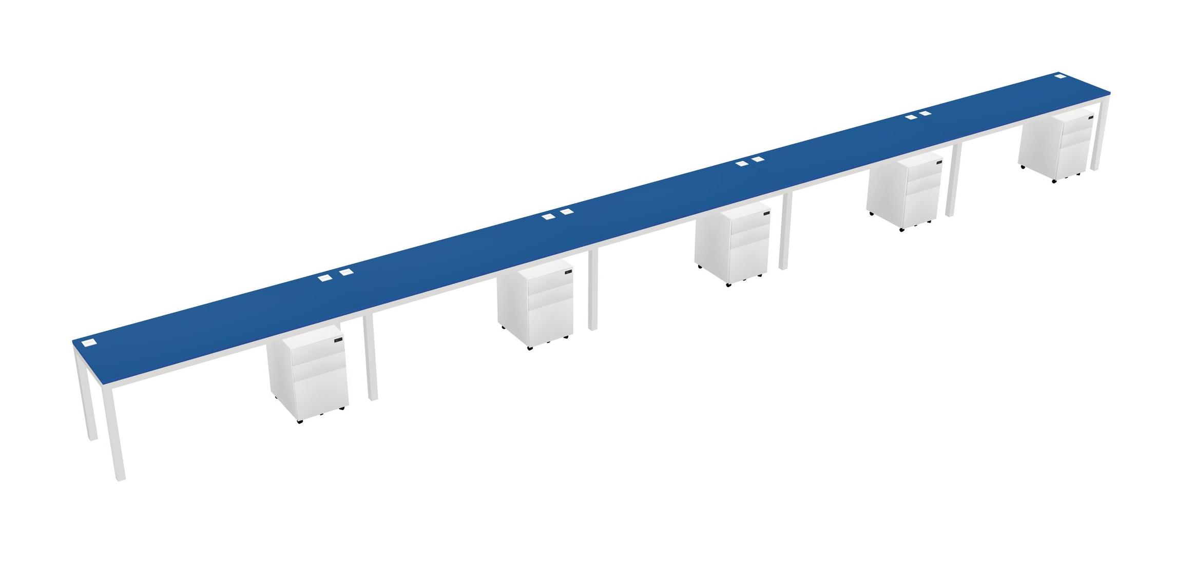 Prism Blue Rectangular Office Desk With Metal Mobile Drawers For 5 Persons