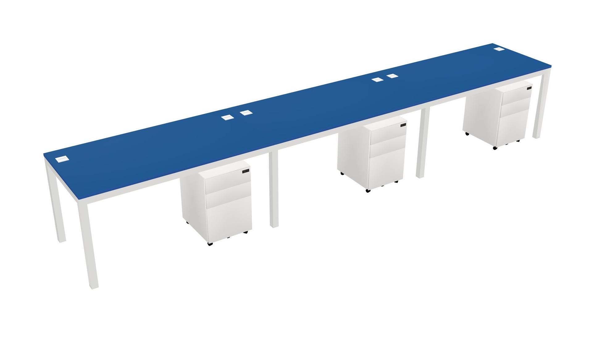 Prism Blue Rectangular Office Desk With Metal Mobile Drawers For 3 Persons