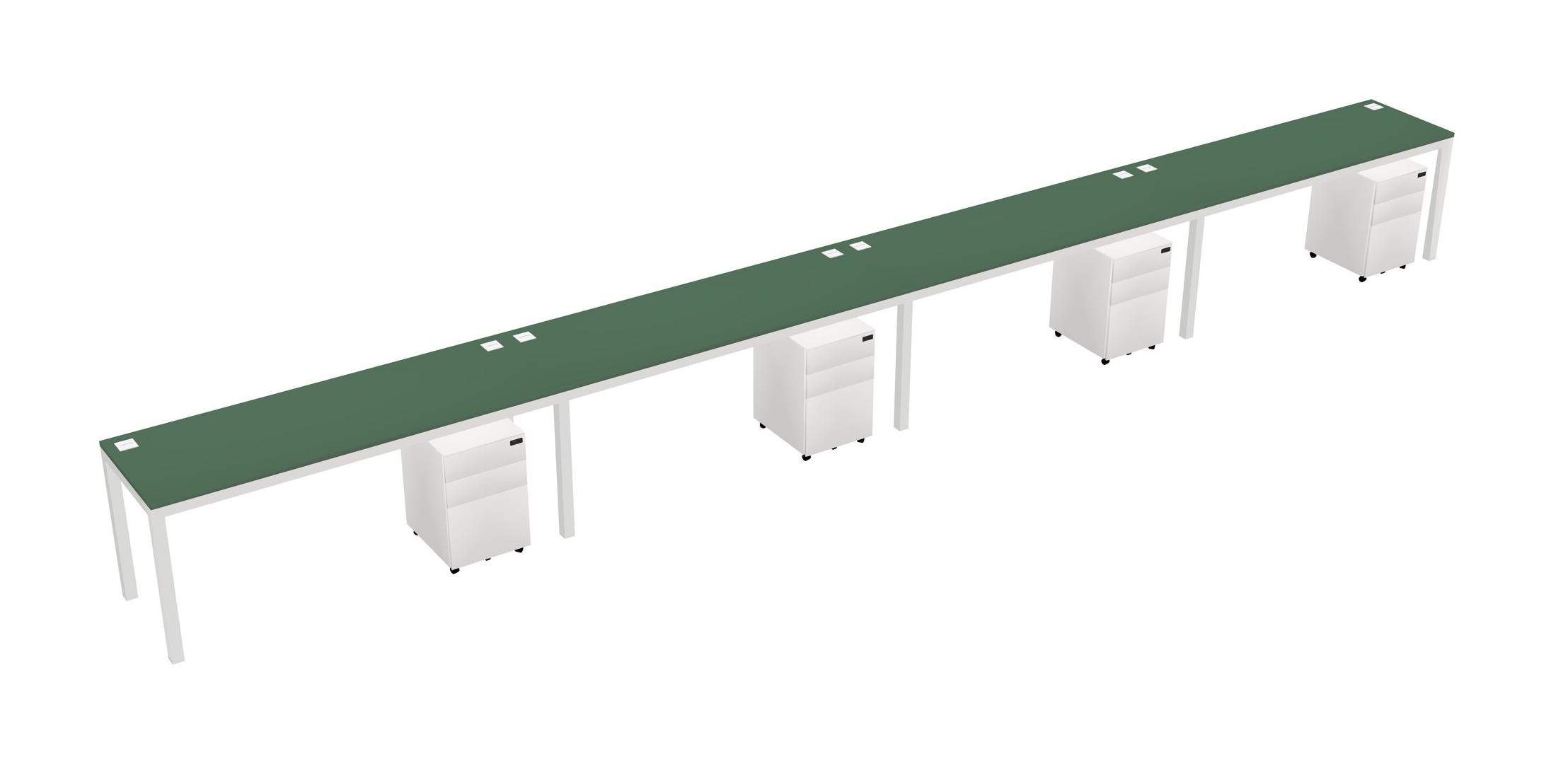 Green Rectangular Office Desk With Metal Mobile Drawers For 4 Persons
