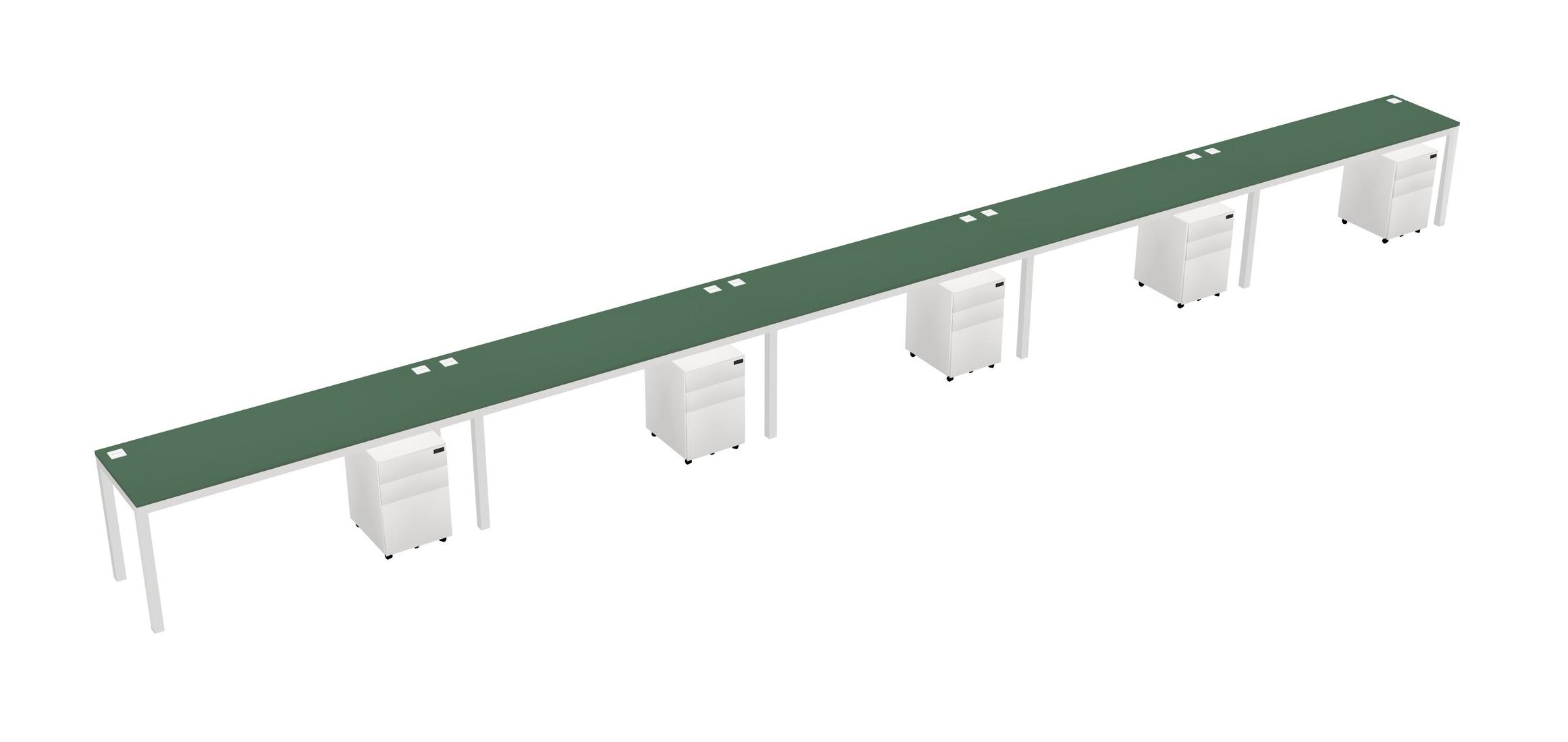 Green Rectangular Office Desk With Metal Mobile Drawers For 5 Persons