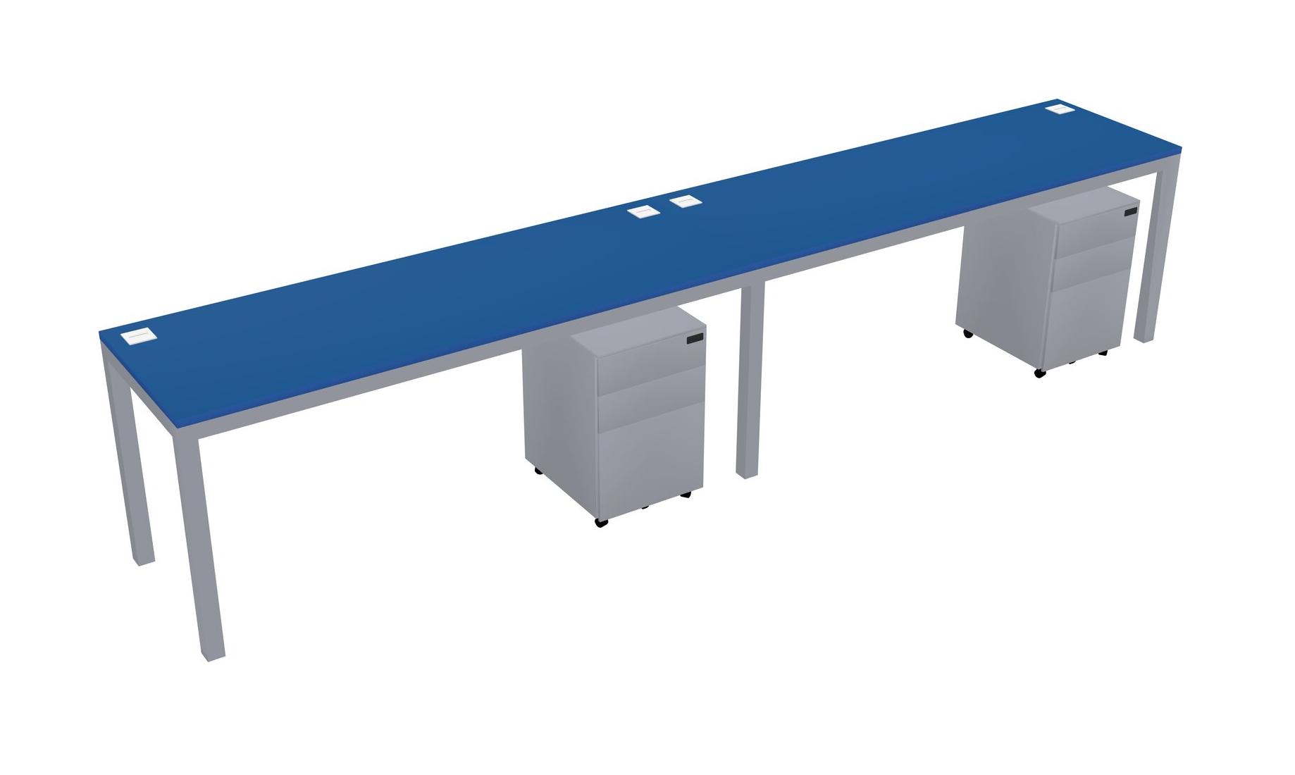 Prism Blue Rectangular Office Desk With Metal Mobile Drawers For 2 Persons