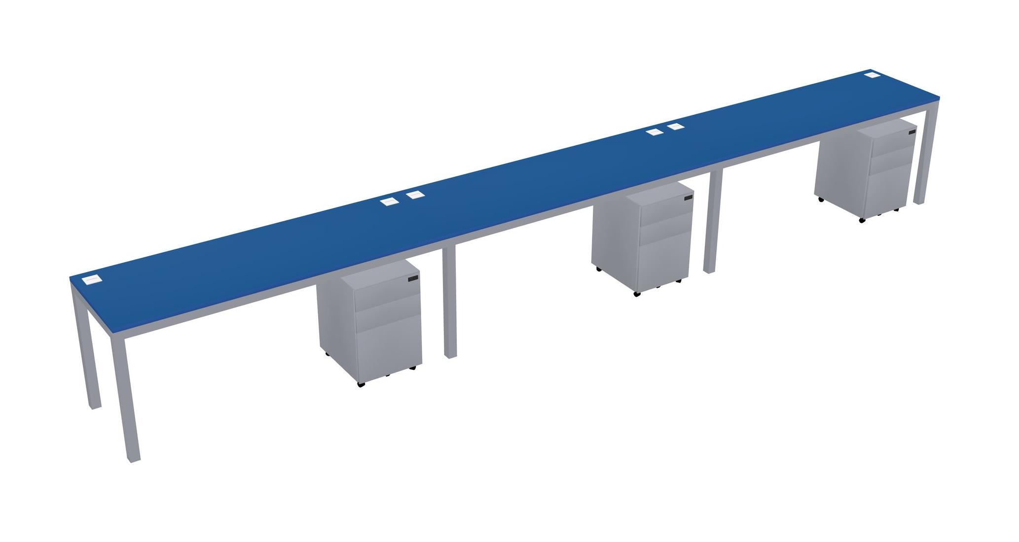 Prism Blue Rectangular Office Desk With Metal Mobile Drawers For 3 Persons