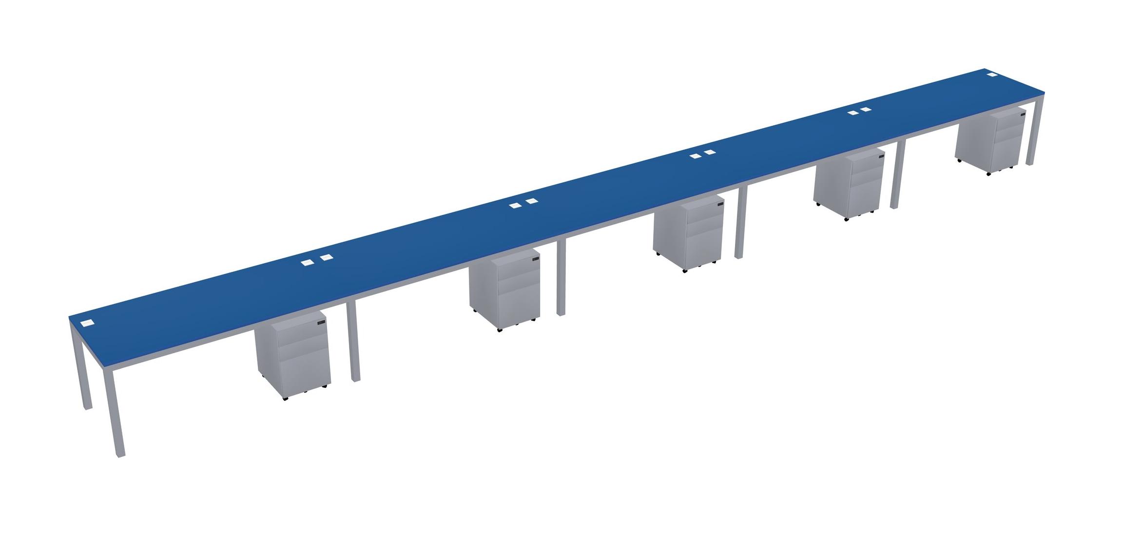 Prism Blue Rectangular Office Desk With Metal Mobile Drawers For 5 Persons