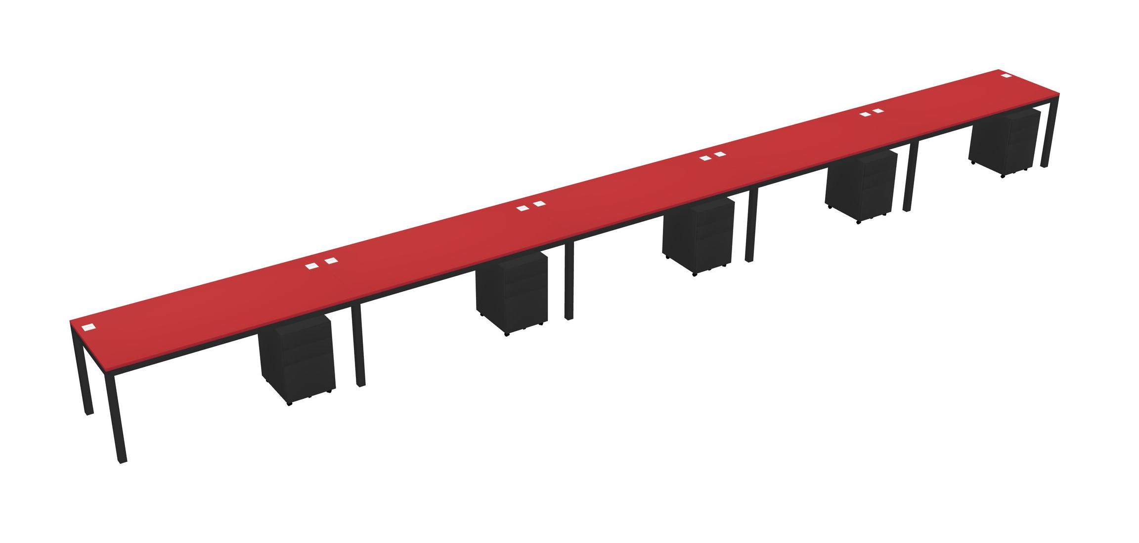 Prism Red Rectangular Office Desk With Metal Mobile Drawers For 5 Persons