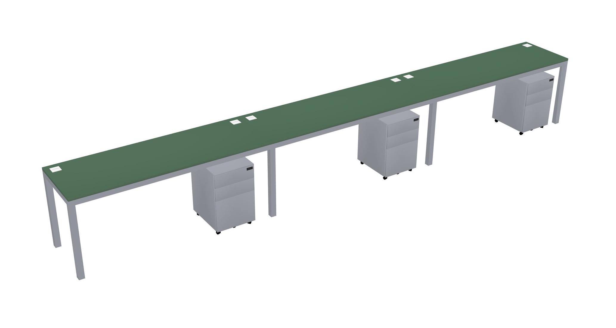 Green Rectangular Office Desk With Metal Mobile Drawers For 3 Persons