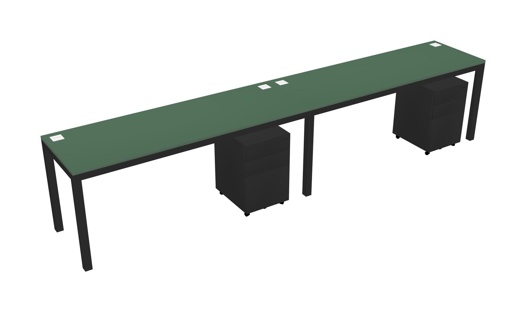Green Rectangular Office Desk With Metal Mobile Drawers For 2 Persons