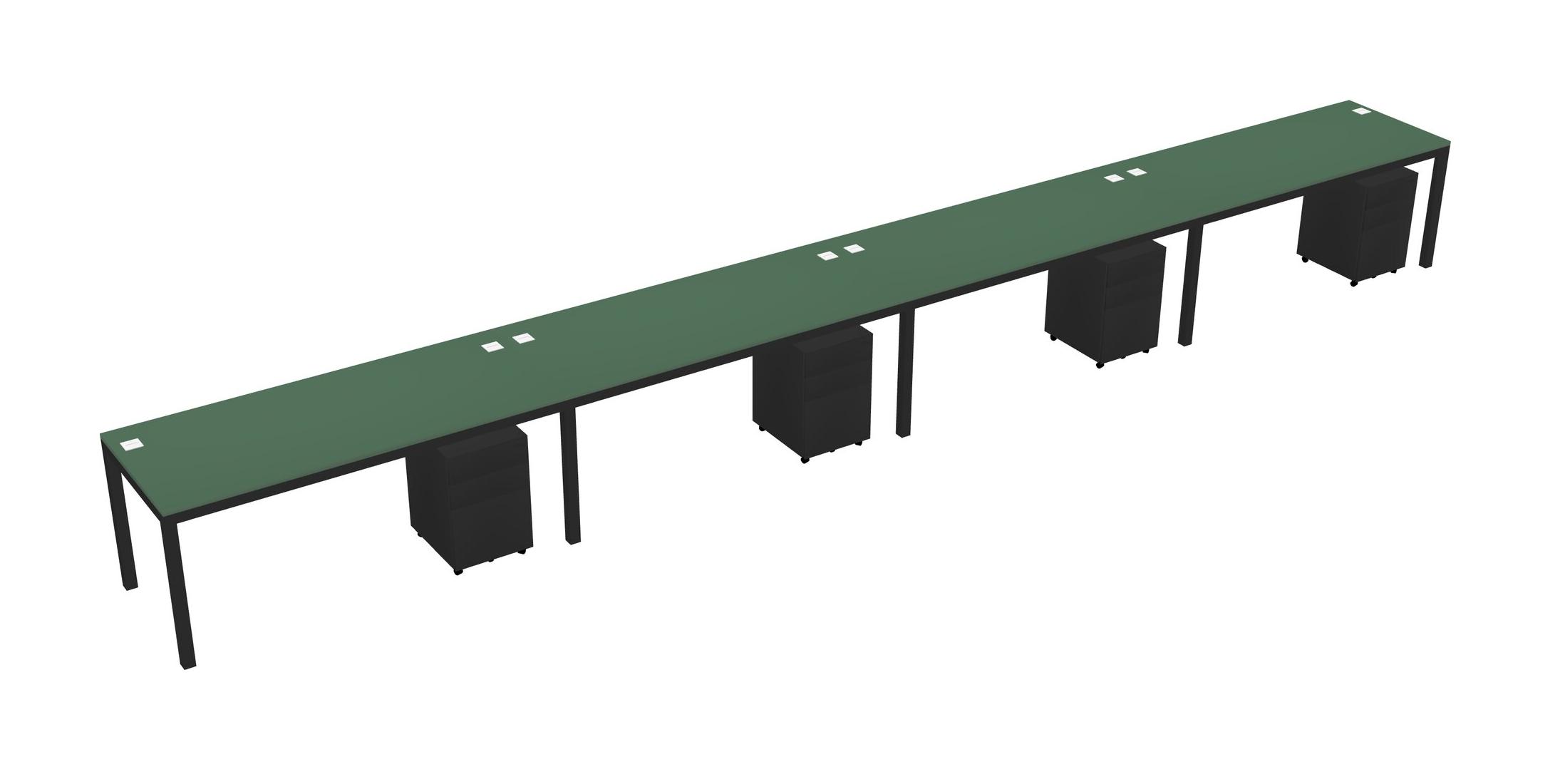 Green Rectangular Office Desk With Metal Mobile Drawers For 4 Persons