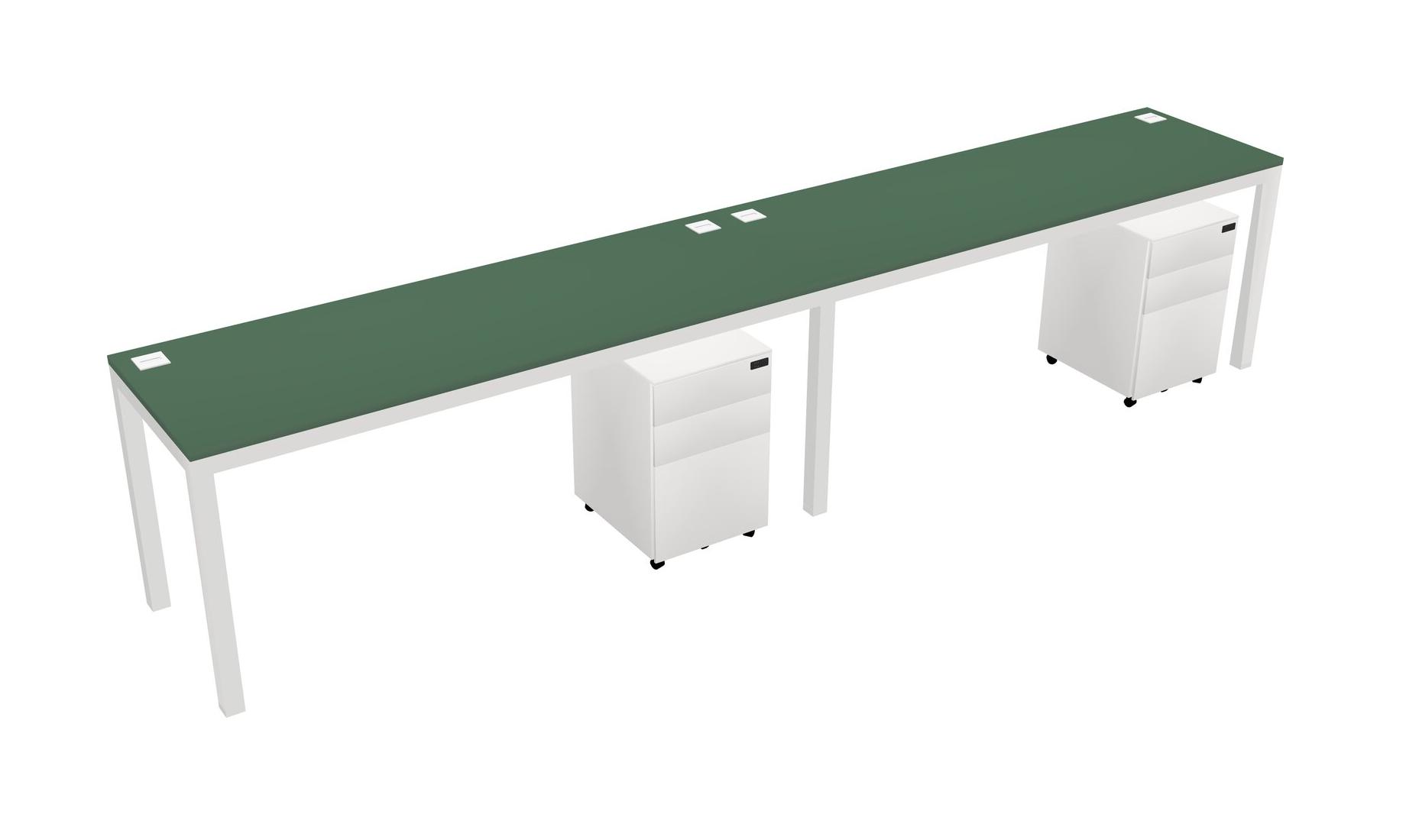Green Rectangular Office Desk With Metal Mobile Drawers For 2 Persons