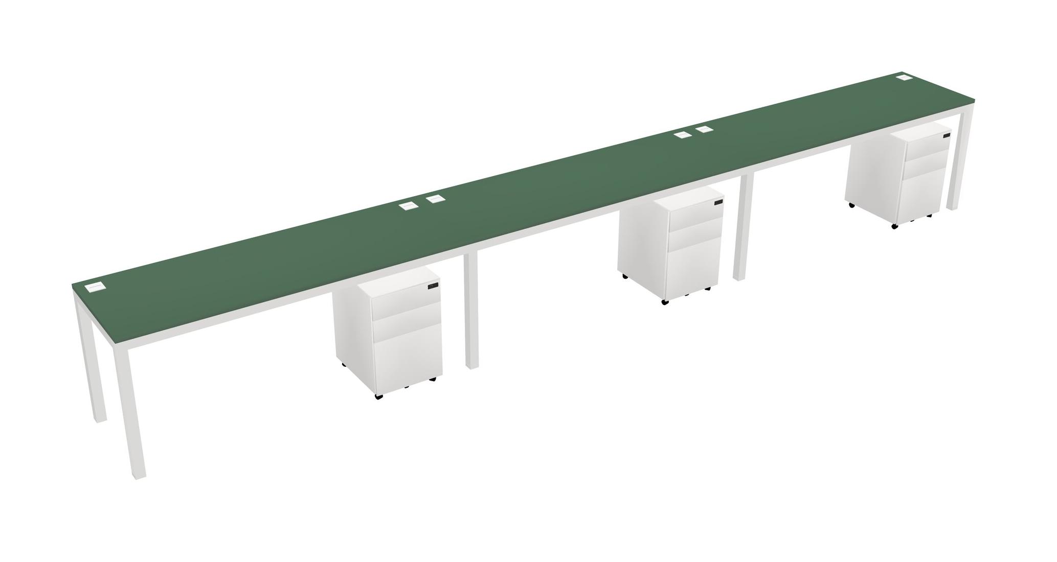 Green Rectangular Office Desk With Metal Mobile Drawers For 3 Persons