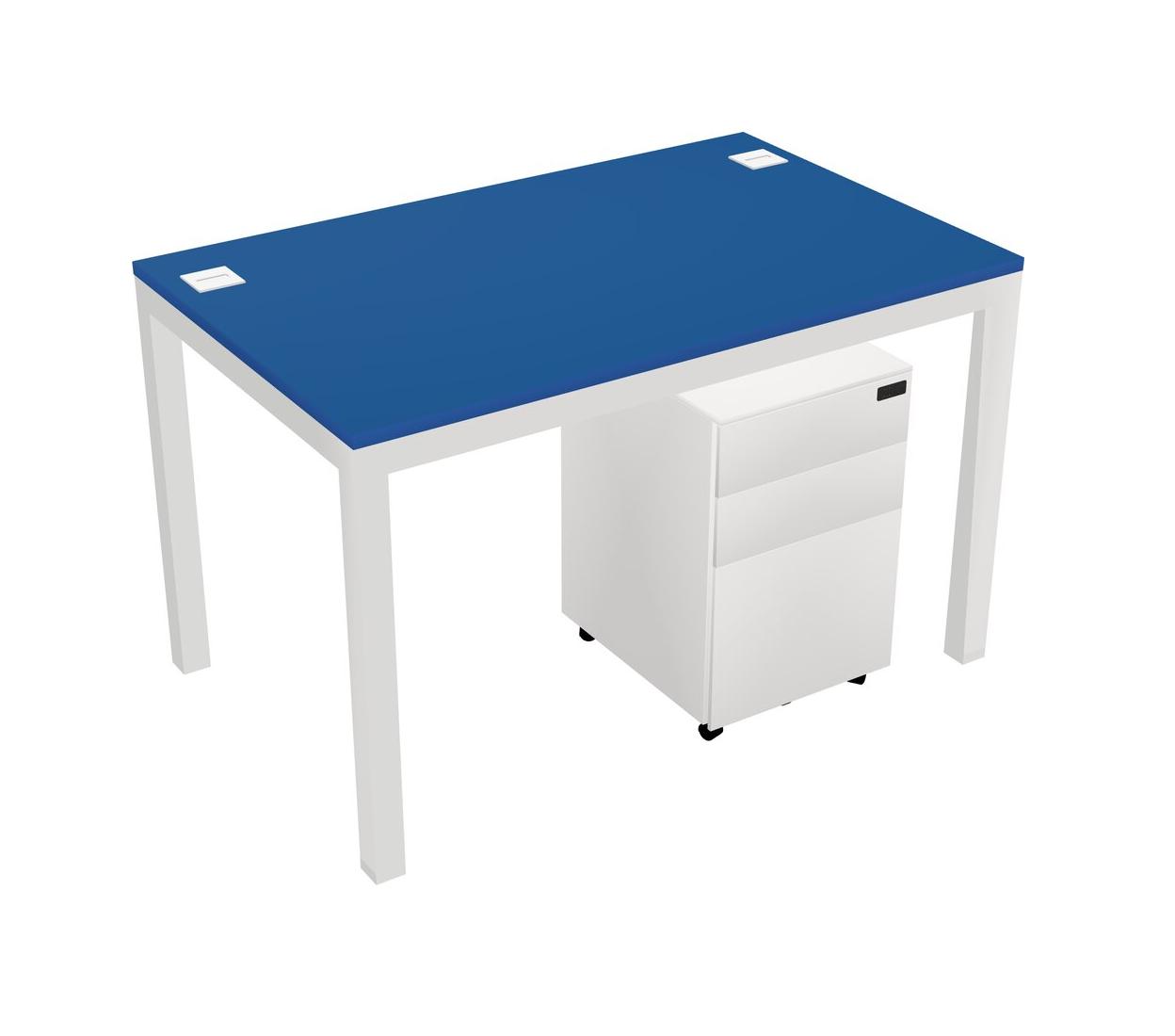 Prism Blue Rectangular Office Desk With Metal Mobile Drawers For 1 Persons