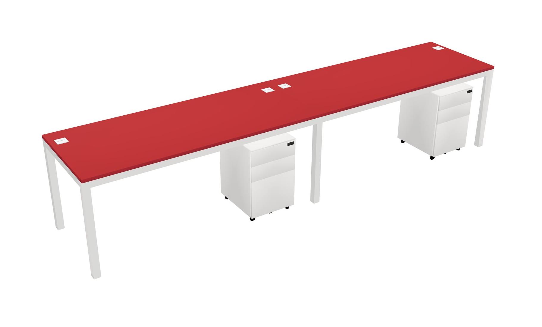 Prism Red Rectangular Office Desk With Metal Mobile Drawers For 2 Persons