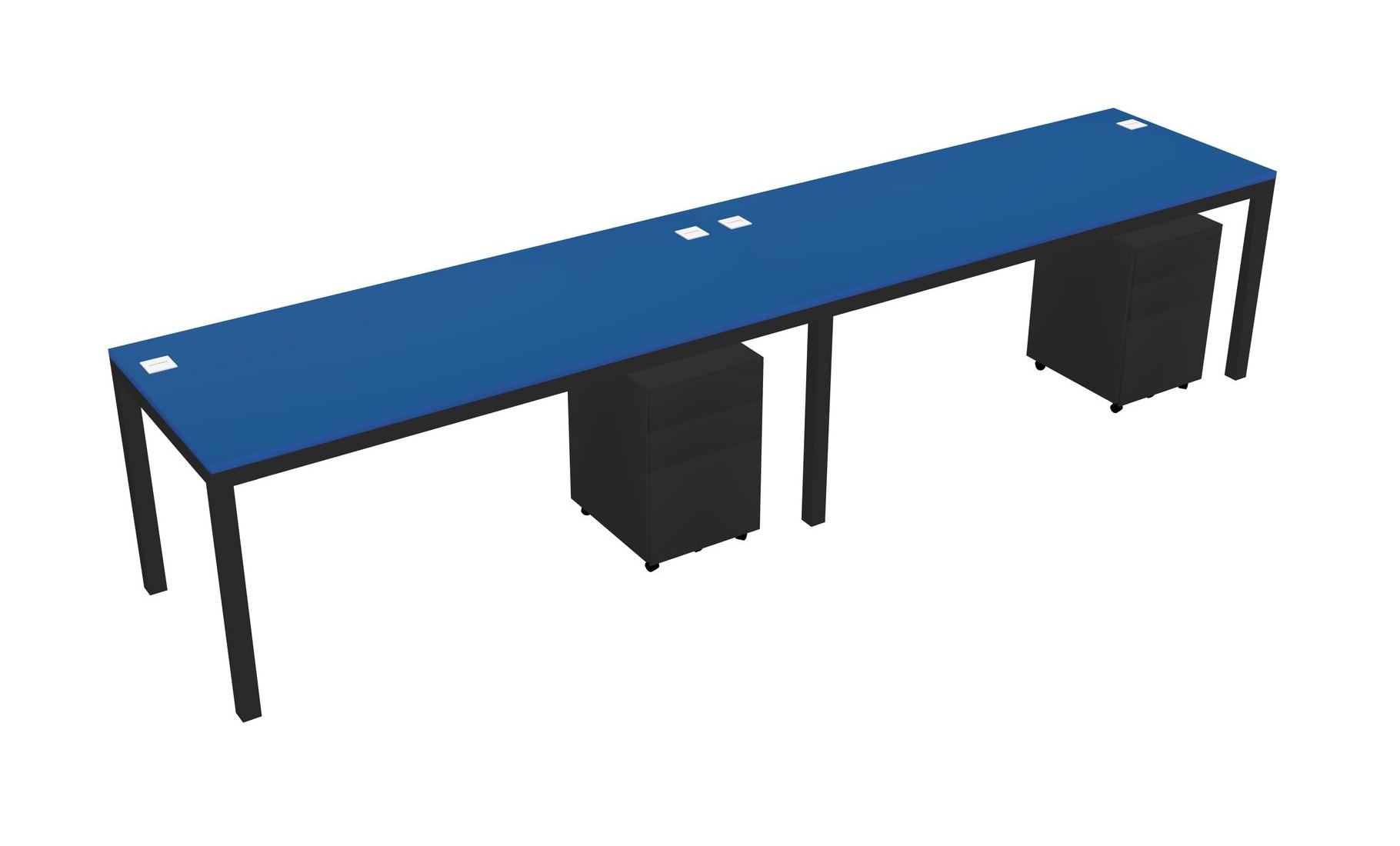 Prism Blue Rectangular Office Desk With Metal Mobile Drawers For 2 Persons