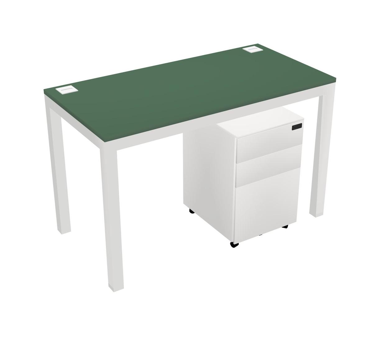 Green Rectangular Office Desk With Metal Mobile Drawers For 1 Persons