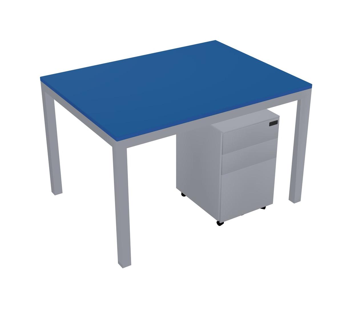 Prism Blue Rectangular Office Desk With Metal Mobile Drawers For 1 Persons