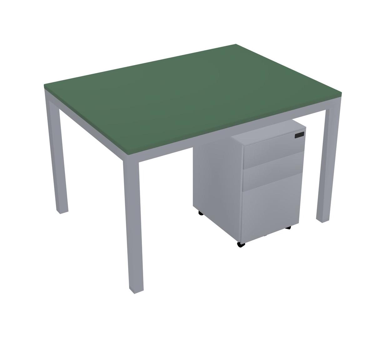 Green Rectangular Office Desk With Metal Mobile Drawers For 1 Persons