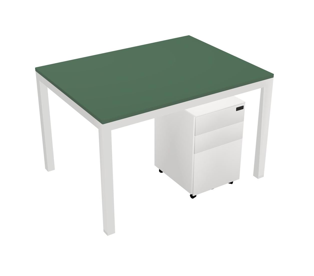 Green Rectangular Office Desk With Metal Mobile Drawers For 1 Persons