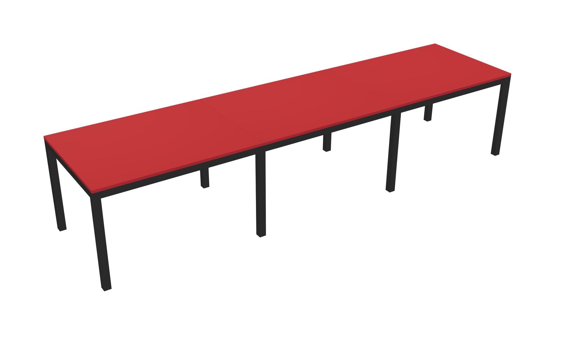 Prism Red Rectangular Office Desk For 3 Persons