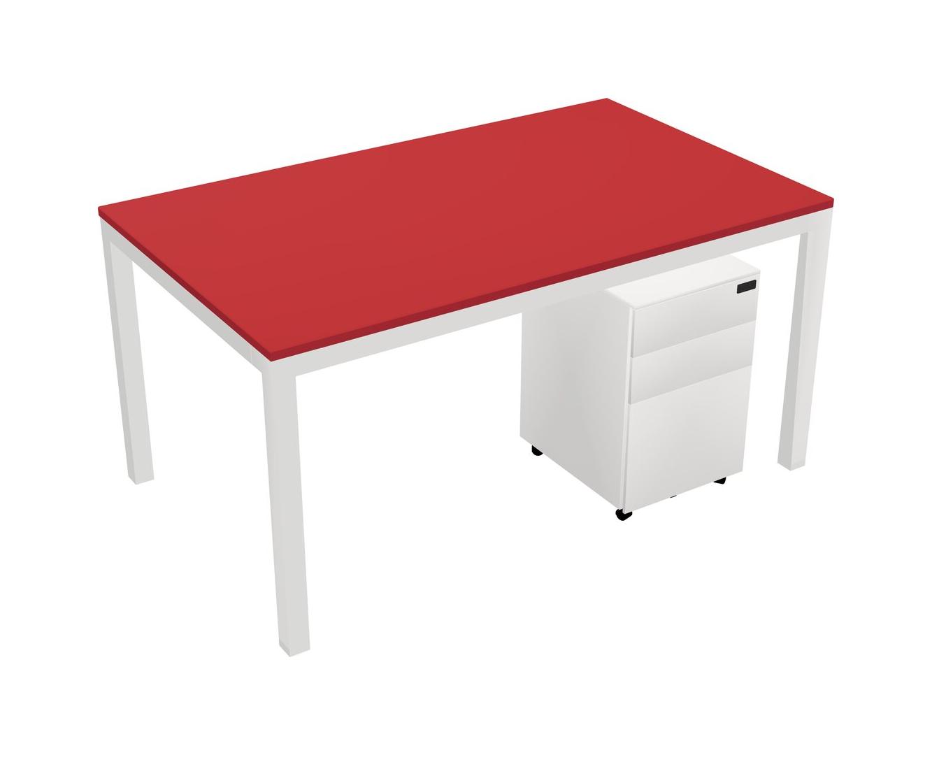 Prism Red Rectangular Office Desk With Metal Mobile Drawers For 1 Persons