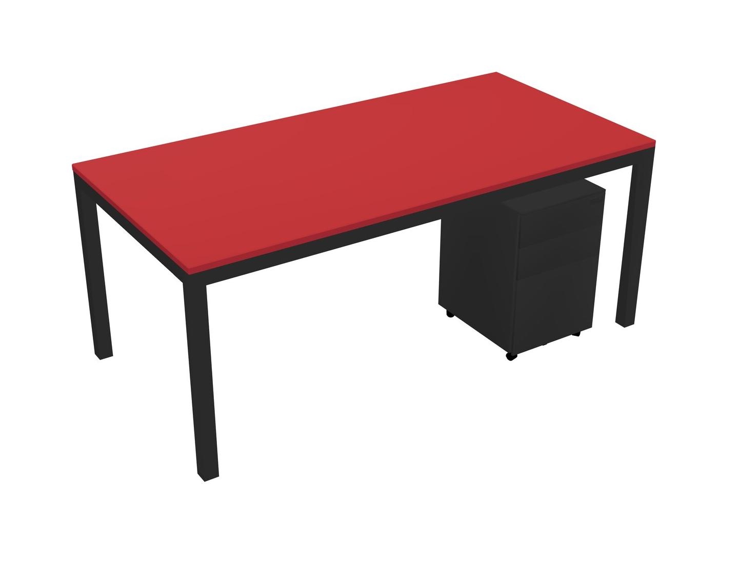 Prism Red Rectangular Office Desk With Metal Mobile Drawers For 1 Persons
