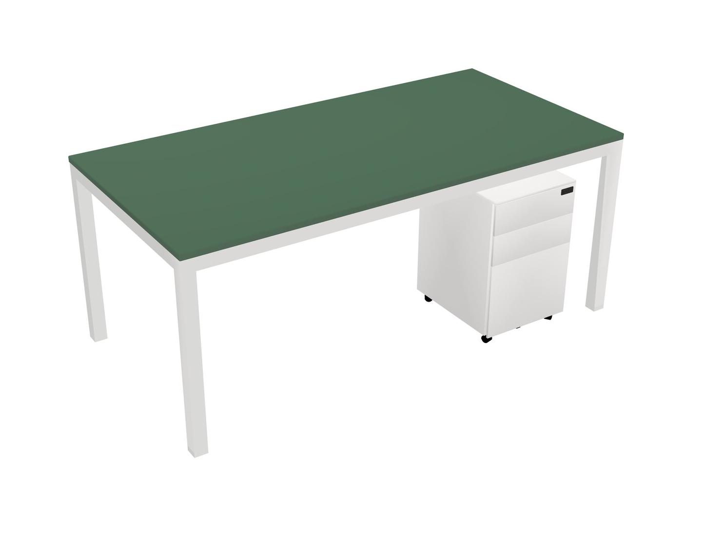 Green Rectangular Office Desk With Metal Mobile Drawers For 1 Persons