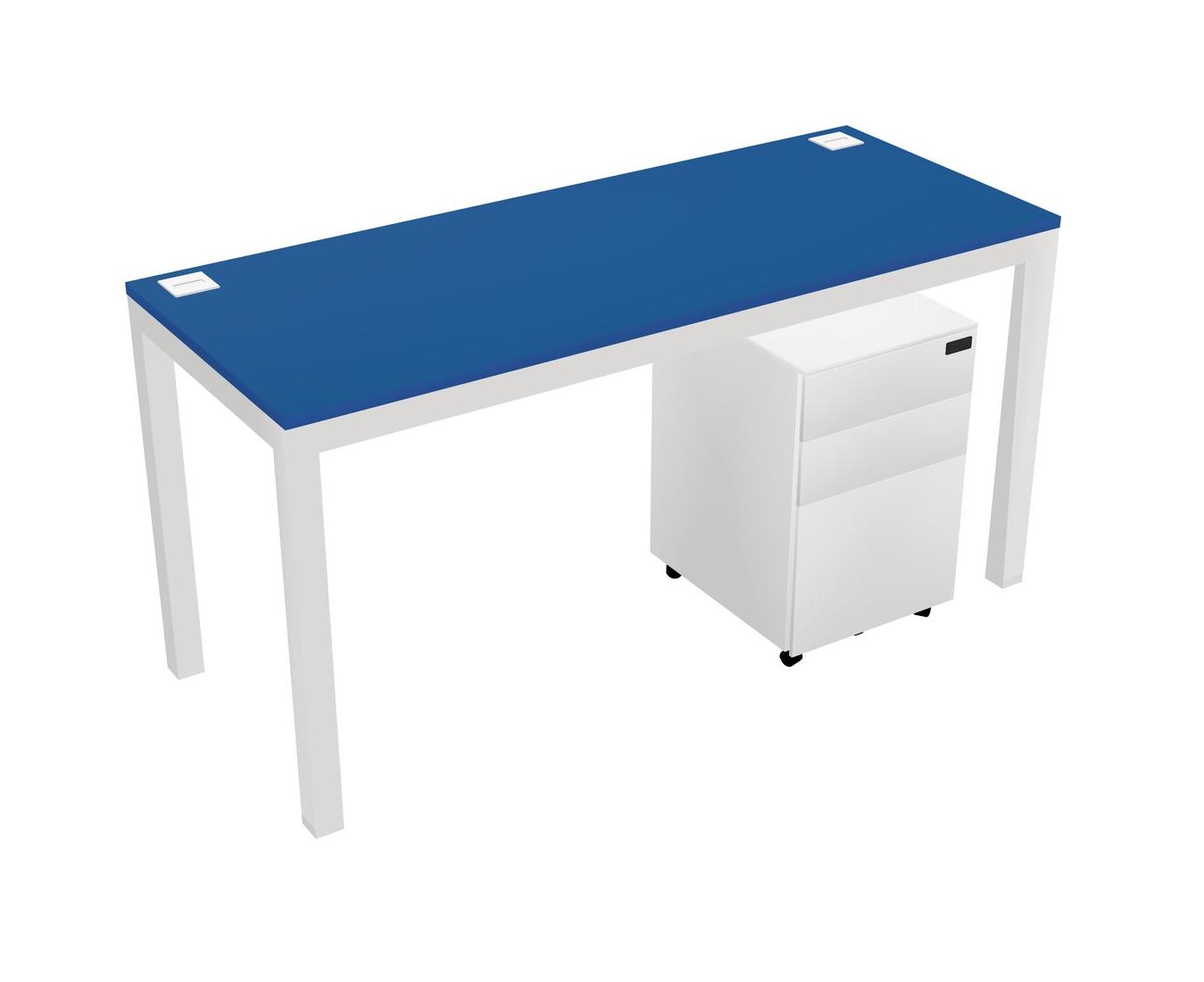 Prism Blue Rectangular Office Desk With Metal Mobile Drawers For 1 Persons