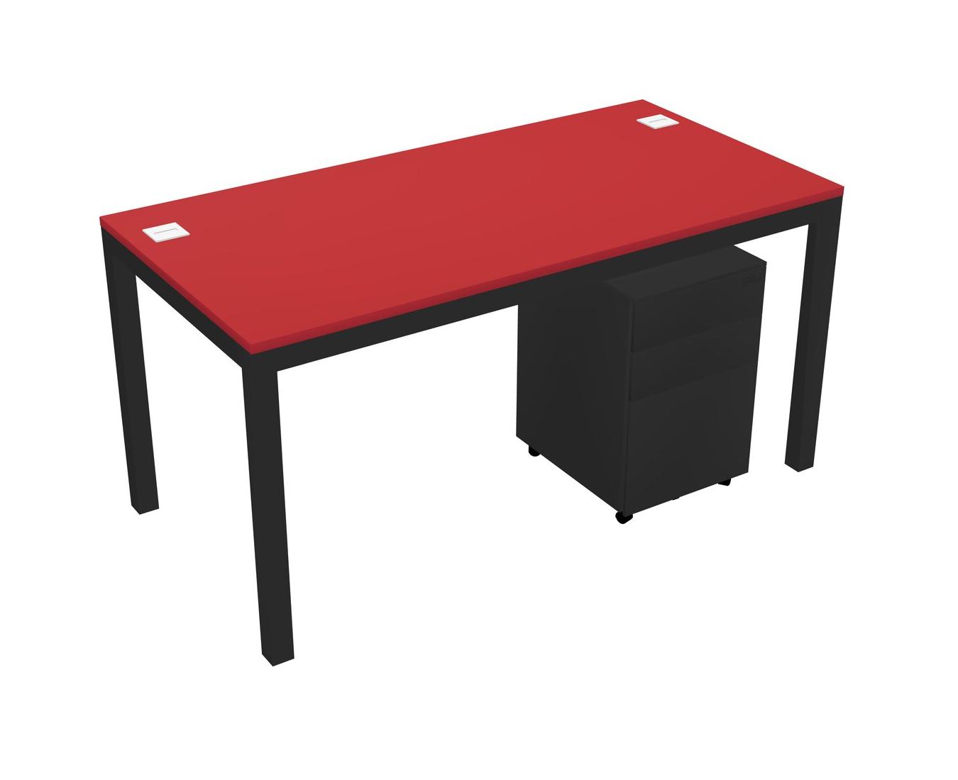 Prism Red Rectangular Office Desk With Metal Mobile Drawers For 1 Persons