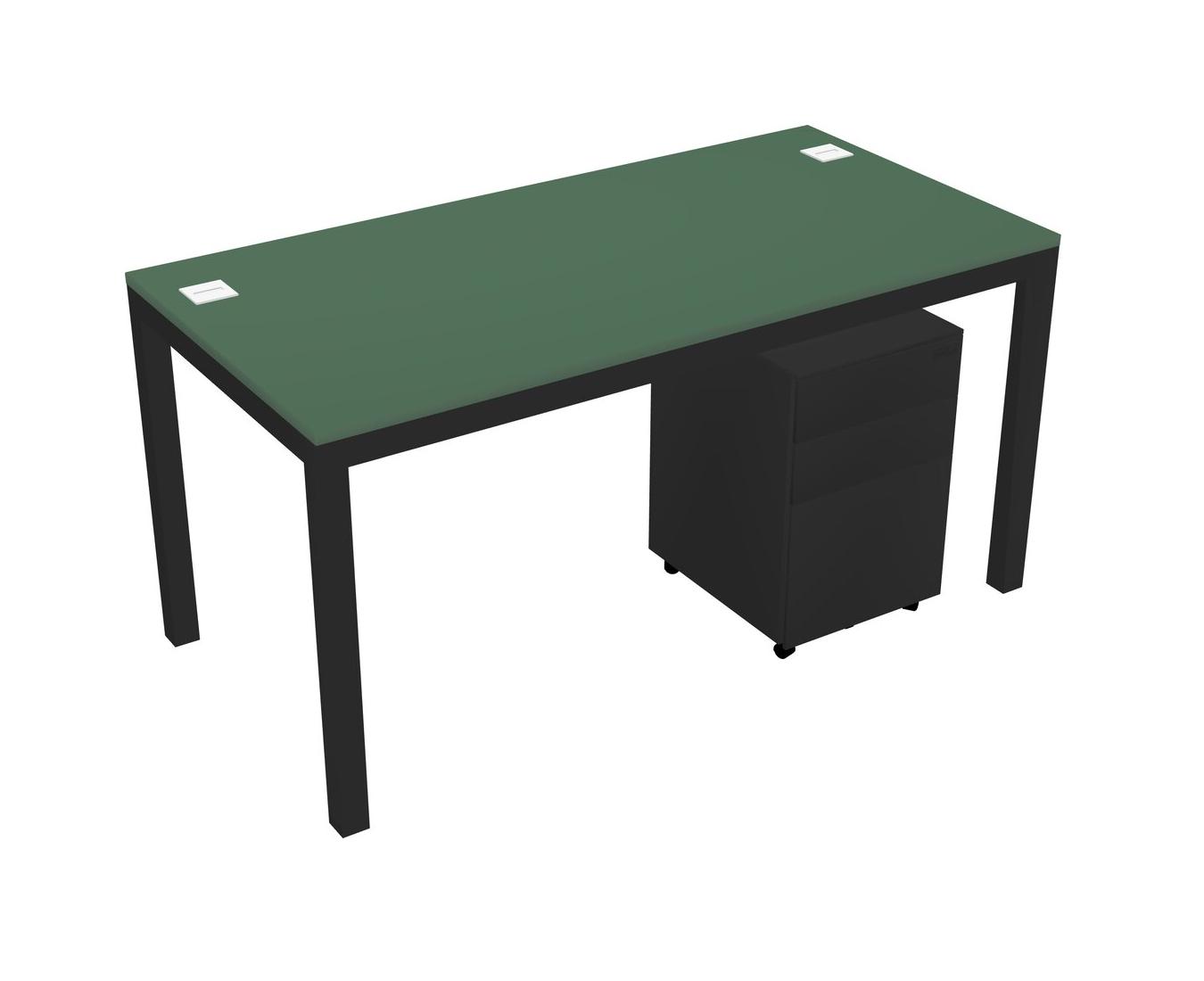 Green Rectangular Office Desk With Metal Mobile Drawers For 1 Persons