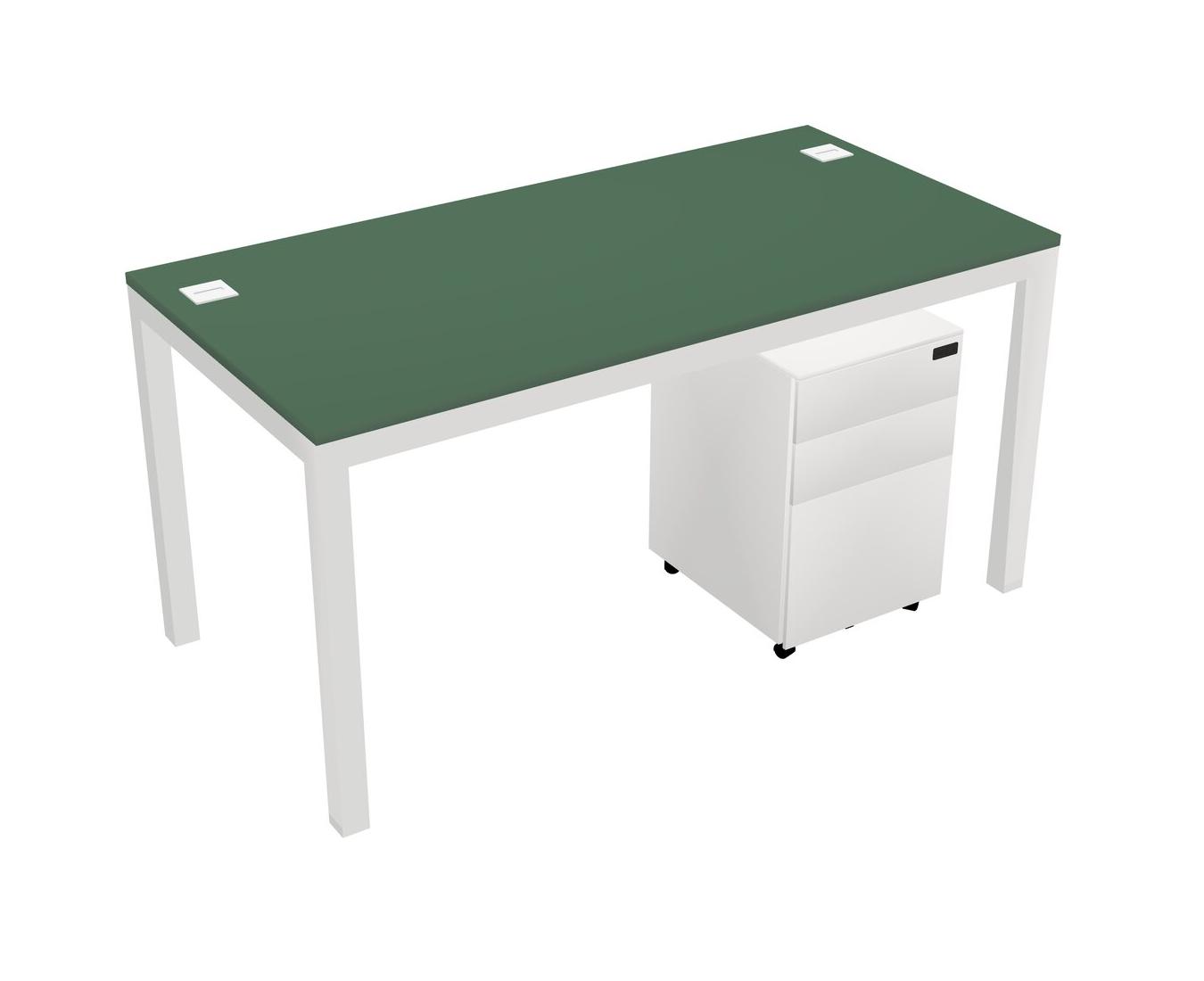 Green Rectangular Office Desk With Metal Mobile Drawers For 1 Persons